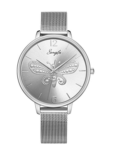 SONGDU Women's Analog Butterfly Dial Quartz Watch with Mesh Band