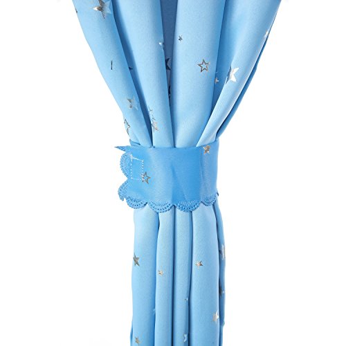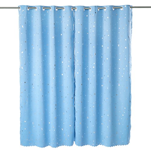 Sky Blue Star Pattern Blackout Insulated Window Treatments Drapes Curtains Set of 2 Panels 51 x 86 inch