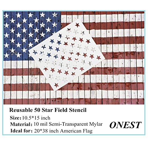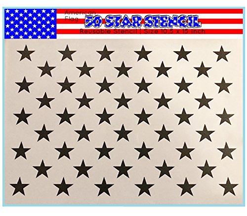 American Flag 50 Star Stencil Template for Painting on Wood, Fabric, Walls, Airbrush and More, 10.5 x 15 inch (actual size 10.5 X 14.82). Made from Reusable Mylar Plastic.