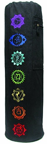 Product Features: Stylish yoga mat bag embroidered with seven colorful energy centers Fits any size yoga or Pilates mat Adjustable shoulder strap Front pocket for personal items Made of 100 percent cotton; machine washable for easy care 100% cotton with emboidered Chakra design Fits any size yoga or Pilates mat 0