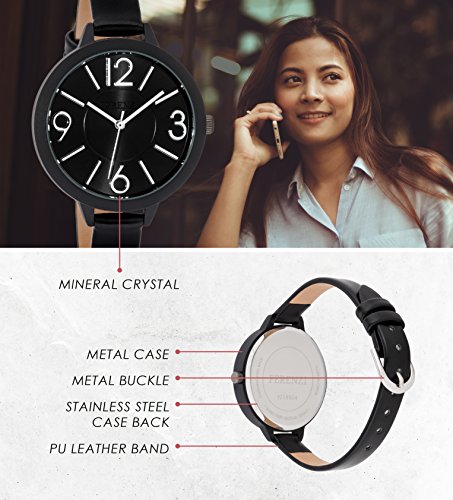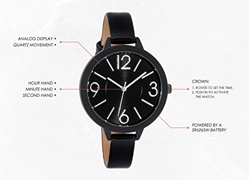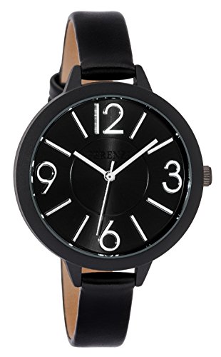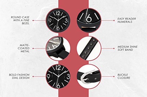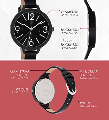 Ferenzi Women’s FZ18504 Modern Silver-Tone and Matte Black on Black Leather Medium Easy Reader Analogue Quartz Fashion Watch