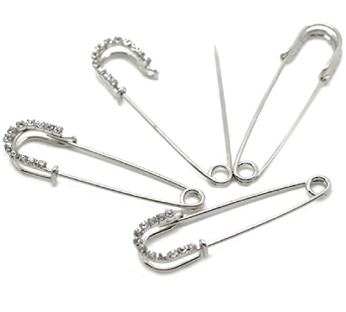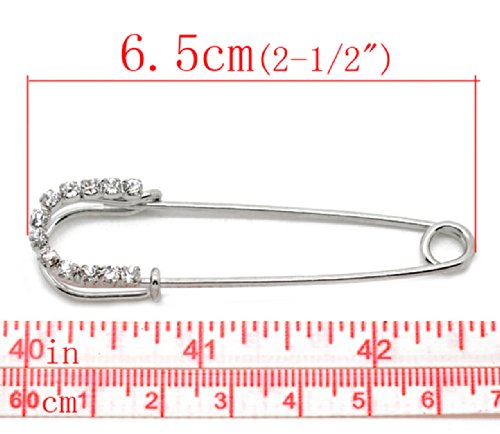 Housweety 10 Silver Tone Rhinestone Safety Pins Brooches 6.5x1.8cm