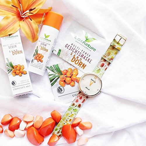 - Red band in soft genuine snake skin, pin buckle, total length 21cm, fits wrists from 13.4 to 18.3 cm