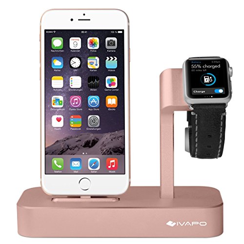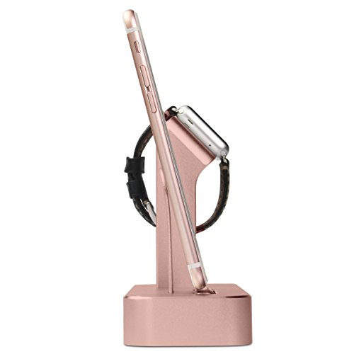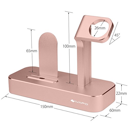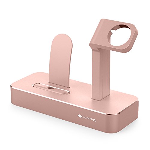 Apple Watch Series 2 Stand, iVAPO [2 in 1 Bracket] Solid Aluminum Charging Holder for Apple Watch Series 2/Series 1/Nike+, iPhone 7/7 Plus/6s/6s Plus/5/5s/SE-Rose Gold