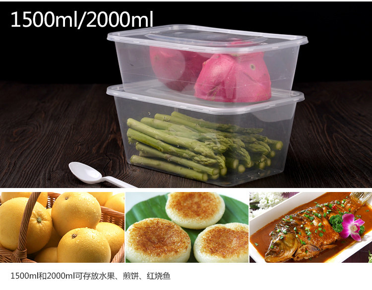 | 规格 | 500ml:顶部16.8x11.5, 底部14.5x9, 高4cm;650ml:顶部16.8*11.5, 底部14.5*9, 高4.6cm 750ml:顶部16.8*11.5, 底部14.5*9, 高5.5cm;1000ml:顶部16.8*11.5, 底部14.5*9, 高7cm 1350ml:顶部28.6*15.6, 底部25*12.5, 高5cm;1500ml:顶部21.6*14.7, 底部17.8*11.2, 高7cm 2000ml:顶部21.6*14.7, 底部17.5*10.5, 高9.4cm | |