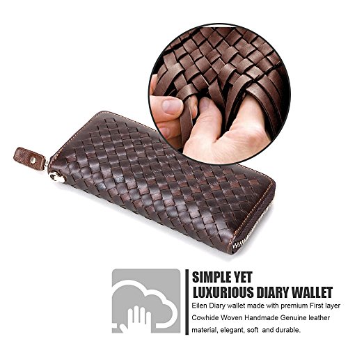 - Title : Unisex Leather Wallet, Eilen 100% Genuine Leather Woven Long Zipper Wallet Men and Women Card Purse Money Clip Clutch Bag (Chocolate)