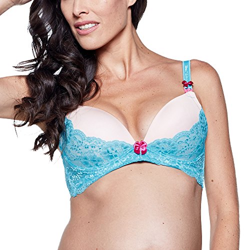 The Carmen bra is part of the You! Lingerie's Enchanted You! Collection - but best believe that it is anything but basic. Beautifully constructed maternity and nursing bras feature soft blue shimmer lace, full molded plunge nude color cups embellished with the brand's signature splash of hot pink color throughout - cup lining, nursing clips, and decorative bows. These super chic bras provide both function and everyday comfort. Use during pregnancy, breastfeeding and beyond. Care Instructions: Hand wash cold, non-chlorine bleach when needed, line dry.You are buying You! Lingerie quality, brand, promise, and customer service. If you are not happy with your purchase, please feel free to return your unworn merchandise for a refund.