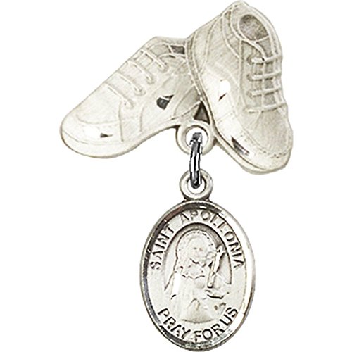 -. Title : Sterling Silver Baby Badge with St. Apollonia Charm and Baby Boots Pin 1 X 5/8 inches