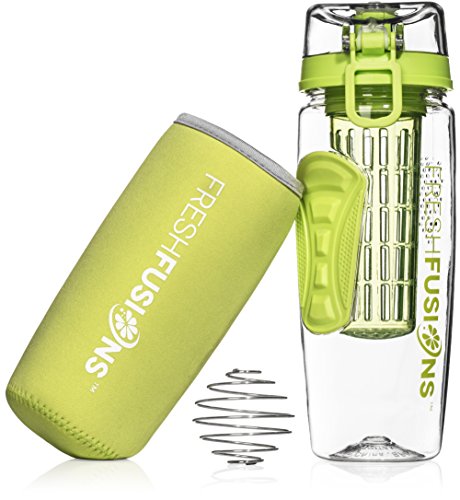 -. Feature : ★ AN UNBEATABLE SET - Combining a BPA free Tritan plastic Infuser Water Bottle, a premium stainless steel blender ball, and a comfortable insulation sleeve all in one set, Fresh Fusions raises the bar in portable beverage versatility. / ★ LOCK IT UP - Say goodbye to those unwanted spontaneous lid openings and the leaks that usually follow! With our LEAKPROOF single button release locking flip top, you can rest assured that your beverage stays where you want / ★ CHOICES - Our bottle not only features a fruit or tea infusion chamber, but also a blender ball to widen your hydration options! So whether it be refreshing purified water flavored with the fruits of nature, or an amino acid fueled recovery shake, we've got the right tool for the job. / ★ TRAVEL BUDDY - Better still, every bottle comes with a comfortable outer sleeve that offers light insulation and an improved comfort grip. Our bottles fit in any normal cup holder, and just as easily in your gym bag or hiking back pack. It's the go everywhere, do anything water bottle you've been waiting for! / ★ GUARANTEED - Best of all, our products are guaranteed FOR LIFE! If for any reason you aren't satisfied with your purchase, just let us know, and we'll refund your money. Make sure to contact us directly! We take care of every return and refund ourselves to make sure you get what you need as soon as possible.