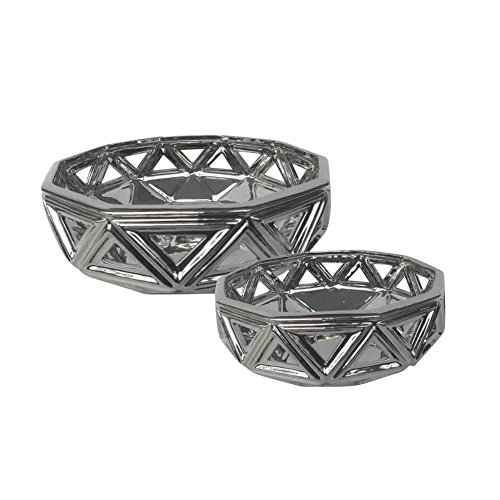 Benzara Captivating Geometric Patterned Ceramic Bowls, Silver, Set of Two