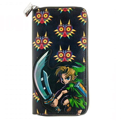Product Description Nintendo's Legend of Zelda Majora's Mask Zip Up Wallet, wallet design features Link in an action pose on an all over print Majora's Mask Black Zipper Wallet. 0
