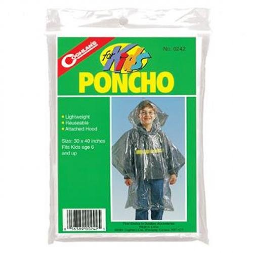 - Feature : Size: 30'' x 40'' / The perfect outerwear to shield your young ones from the rain, the poncho for kids is designed to keep your children safe and dry all the way to the bus. / Crafted to fit ages 6 and up, this lightweight poncho features an attached hood and is durably crafted to be reused again and again.