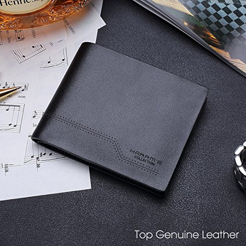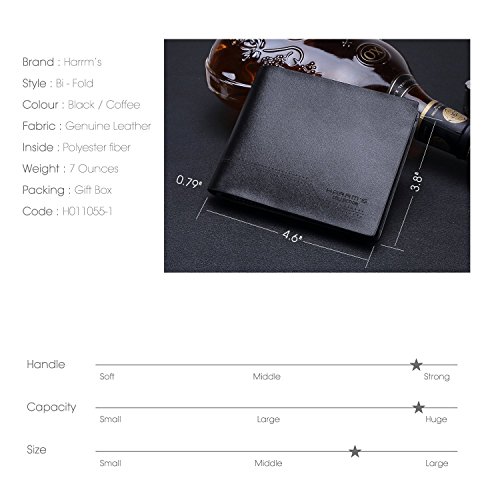 -. Binding : Apparel -. Brand : Harrms -. ClothingSize : One Size -. Color : Black-Glossy-Classic -. Department : mens -. EAN : 0712962570216 -. Feature : Perfect Front Pocket wallet to carry some money ID and a few cards,Top quality! / Design is USA,Tough stitching.Hand Made by professional artisans.a beautifully crafted wallet that will only get better with age. / 100% Italian Cowhide leather . Gift packaging, the best gift of choice. / We know you'll love our wallet, that's why if you aren't 100% satisfied we will provide you with a refund or a free replacement - which ever you prefer. Buy more for your friends and family. / Dimensions = 4.6" 3.8" 0.6".Two bill compartment, Five credit card slots, and One leather-framed ID window. -. ProductGroup : Apparel -. ProductTypeName : ACCESSORY -. Size : One Size -. Title : Harrm's Genuine Leather Bifold Wallets Italian Cowhide (One Size, Black-Glossy-Classic Style) -. UPC : 712962570216