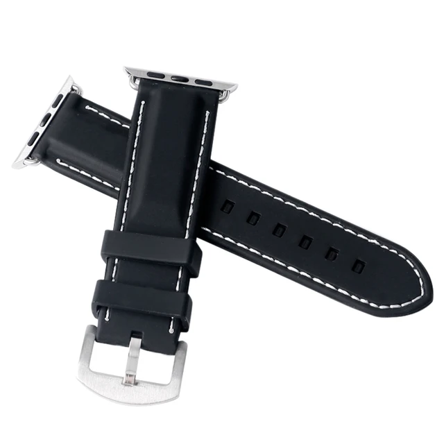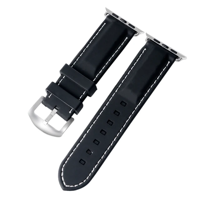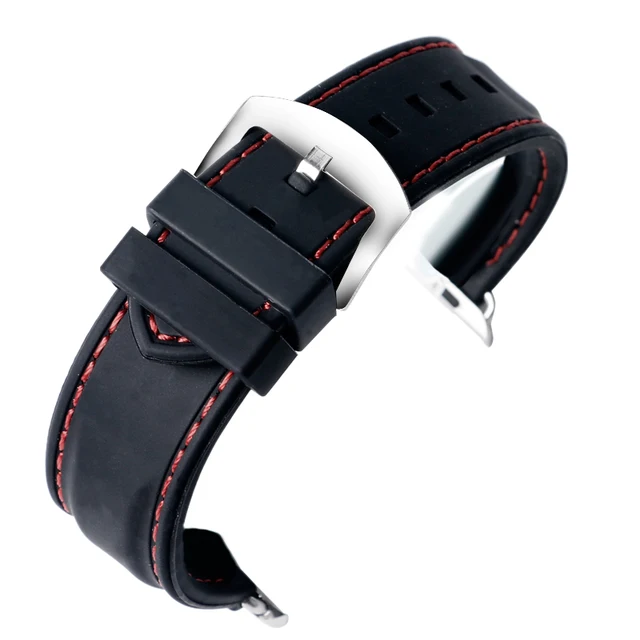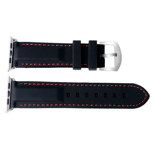 | [해외] 화이트/레드 라인 스티치 남성 38 미리메터/42 미리메터 대한 apple watch 밴드 스포츠 블랙 실리콘 방수 스트랩 iwatch |