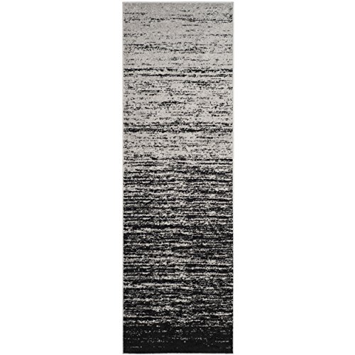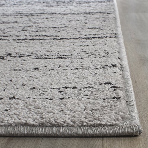 Make a decorative statement with this effortlessly modern rug from Safavieh’s Adirondack collection. A subtle washed effect gives the rug character and an impeccably relaxed yet intricate appearance. Striated lines of silver and black shades create a gradient effect that will seamlessly work alongside a multitude of colors and prints for a true contemporary feel.