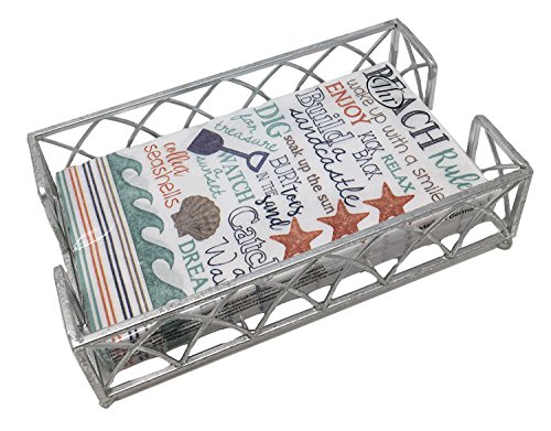 Studio : Ideal Home Range Publisher : Ideal Home Range Binding : Kitchen Product Description Welcome your guests into your home or beach house in a fun and whimsical way with the Ideal Home Range Beach Rules 3-ply disposable paper guest towel napkins and a Boston International Arch Silver Leaf metal caddy (see more below). These guest towel napkins feature words and phrases about the beach in blue, green and red on a white background that will liven up any gathering or special occasion. Versatile enough for powder rooms, bathrooms, buffet tables, dinner parties and more! Also makes for a lovely hostess or host gift. The 3-ply guest towel napkins come 16 in a pack and are disposable, making for a quick and easy clean up. Great for parties or everyday use. They measure 4.5"W and 8.5"L folded. The guest towels are printed in Germany, using non-toxic, water soluble dyes. The caddy measures 9"L x 5.25" W x 2.5" H and has a silver leaf finish. It can hold up to 30 guest towels. 0