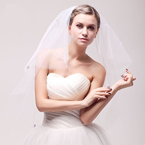 (Erosebridal)/Accessories/Scarves/DIRECT FROM USA/Erosebridal Bridal Veil with Crystal Beaded Short Bridal Veils for Wedding
