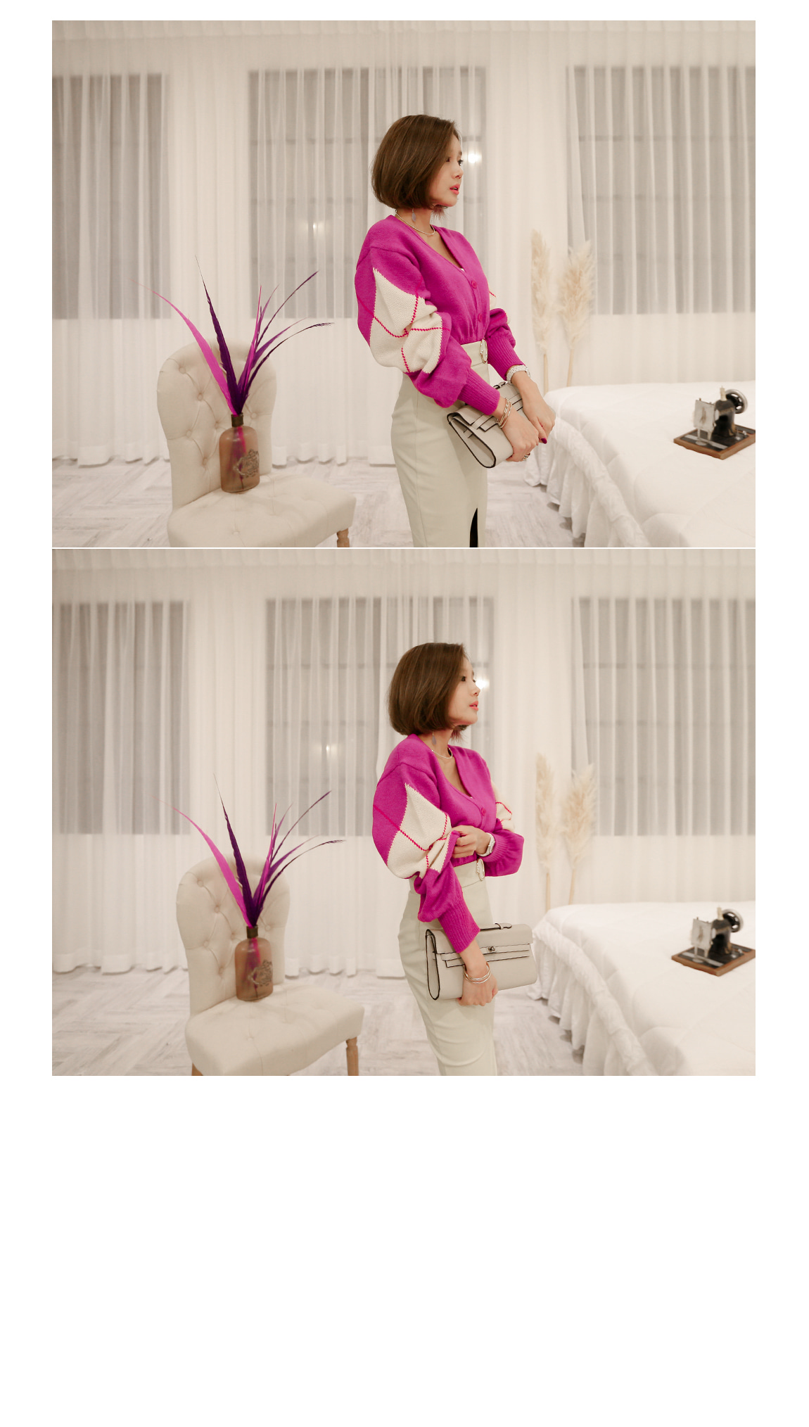 양쪽 소매에 아가일패턴으로 포인트를 주었으며
