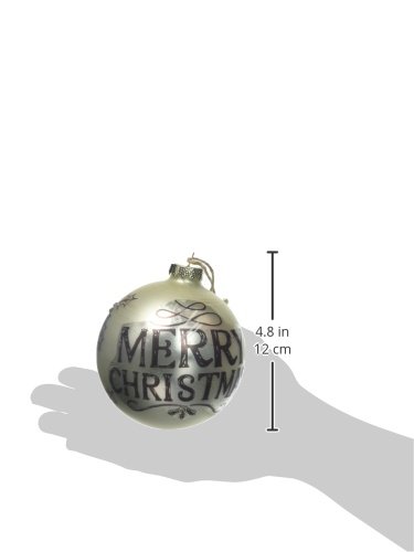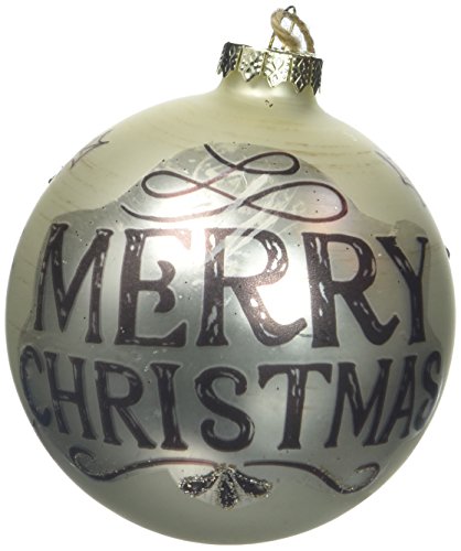 - Hand blown glass and hand-painted frosted champagne ornament with "Merry Christmas" message in brown with hints of snow