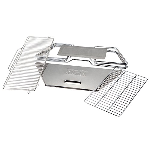 - Made from premium food grade stainless steel. For use with charcoal and wood. Includes carry bag.