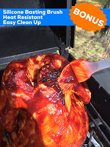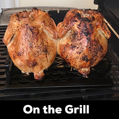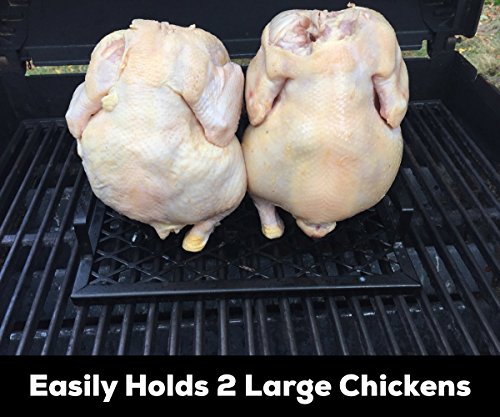 Holds 2 Large Birds – Because you’re always going to wish you cooked more and our stable dual roaster rack works with weber or ceramic smoker type grills and it’s wide base wont tip over.