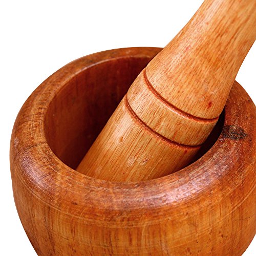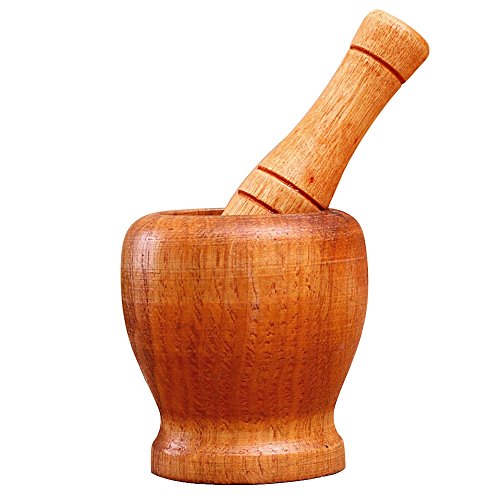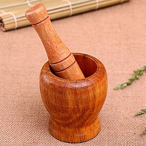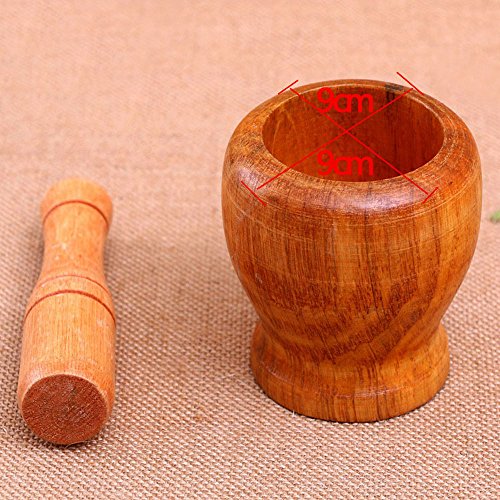 Kangkang@ Home Kitchen Hand Manual Wood Garlic Ginger Mortar and Pestle Grinding Bowl Masher Grinder Mixing Device