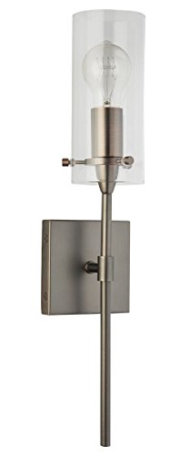 Add a touch of modern sophistication to your home with Effimero Wall Sconces. Designed to coordinate with the best selling Effimero pendant collection, Effimero wall lamps are available in a variety of finish options and glass types. Ideal for bedrooms, bathrooms, corridors and entryways, Effimero wall fixtures provide generous lighting for spaces large and small. The fixture measures 20 inches high, 4-1/2 inches wide and projects 4 inches from the wall. It has a 4-1/2 inch square backplate, and a clear glass shade that measures 3.5 inches in diameter by 8 inches high. It uses one medium base bulb and is compatible with a number of options, including incandescent (60W max), Compact Fluorescent and LED (bulb not included). It is fully dimmable when used with a compatible bulb.Feature