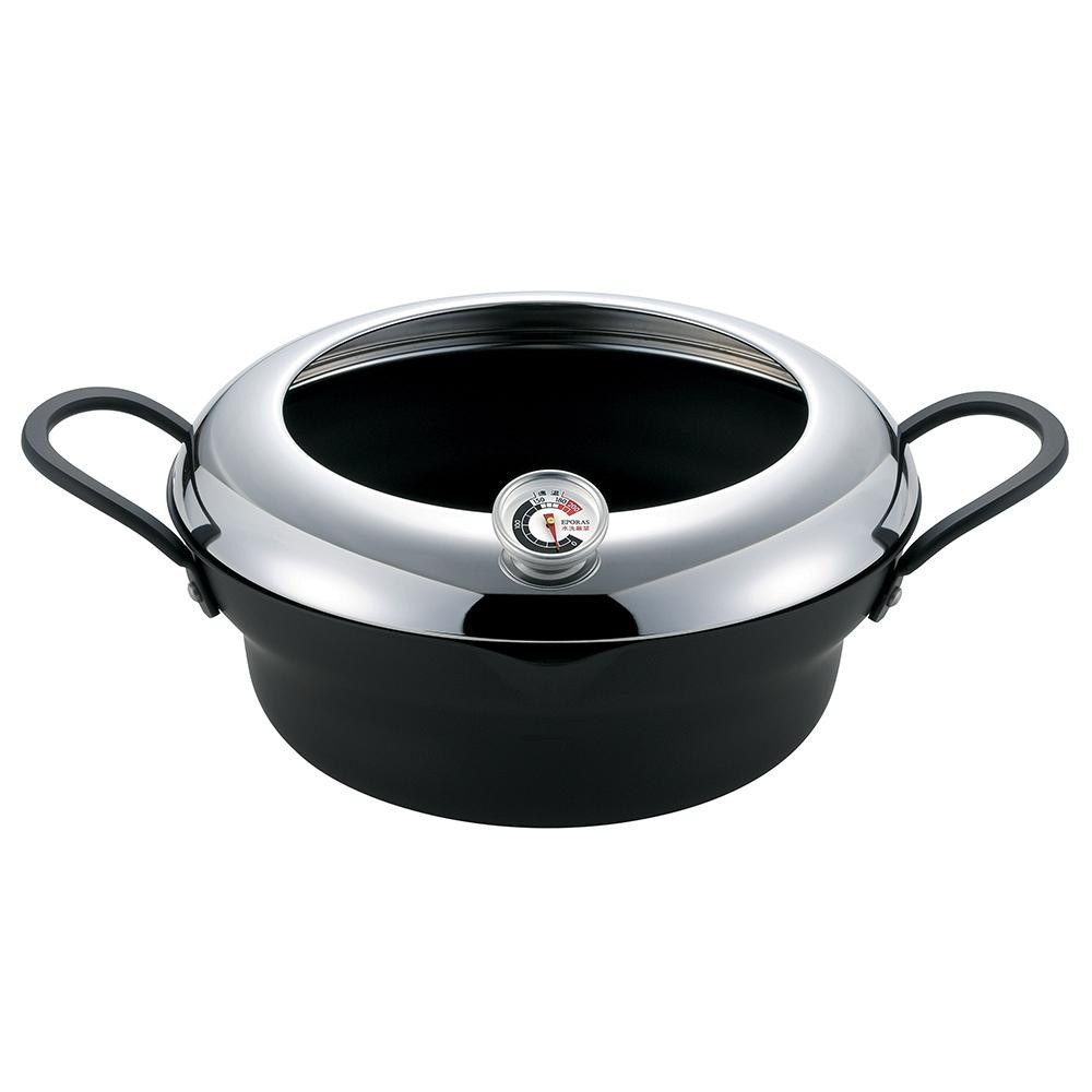 | 油の飛びはねを防止するガード枠付き。ハンドルは持ちやすく、安定感があります。 |