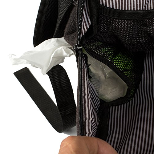 Comfortabel & Practical & Convenient --Choice of stroller straps,grab handles and padded shoulder straps make you full day comfortable. Insulated bottle/sippy cups pockets store and keep baby foods at perfect temperature for hours. Easy-access zipper side pocket for baby wipes. A Changing Mat included, A great baby shower gift!