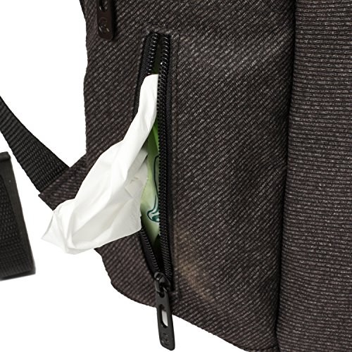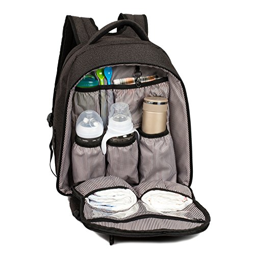 *A total of 18 internal and external pockets along with added features including a zip-top closure,easy-access front big pocket,3 insulated bottle pockets, grab handles,stroller straps, padded shoulder straps,2 easy-access side pockets(1 x bottle/sippy holder, 1 x baby wipes pocket)