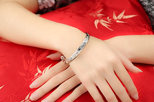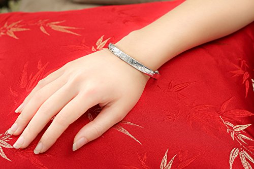 -. Feature : Material:S999 Sterling silver / Specification:Minimum inner diameter 6CM, width 1.3CM, thick 0.2CM / Weight:+/- 24g / Style:Asian Style ,for girl or wedding gift Adjustable Bracelet / women bangle bracelets