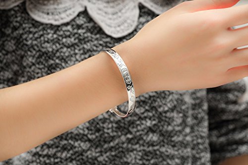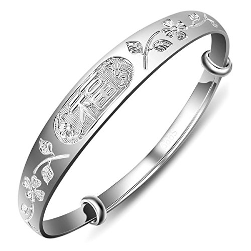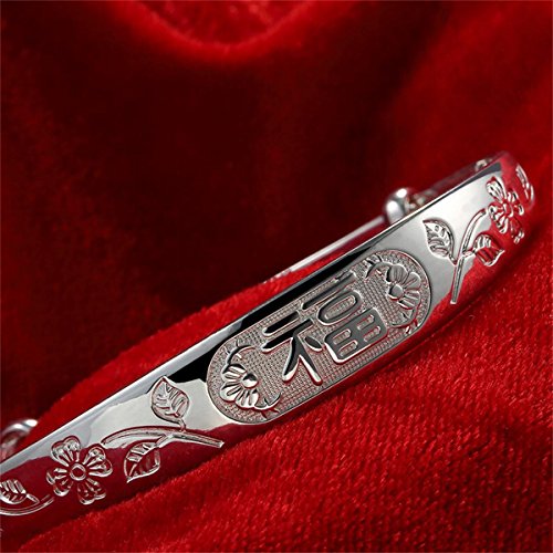 -. Title : Women's 999 Sterling Silver Fu Flower Carved Bangle Bracelet 24g Weight for Wedding Gift