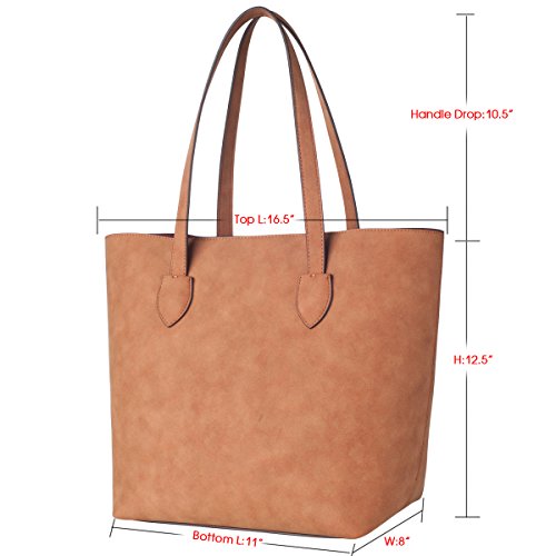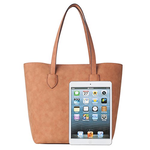La Cle LA-028 Suede Leather Large Shopper Shoulder Tote(Bronw)