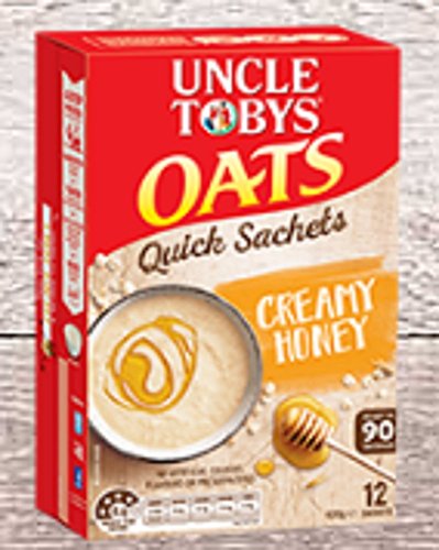-. Title : Uncle Toby's Oats, 12 Quick Sachets, Creamy Honey, Ready In 90 Seconds