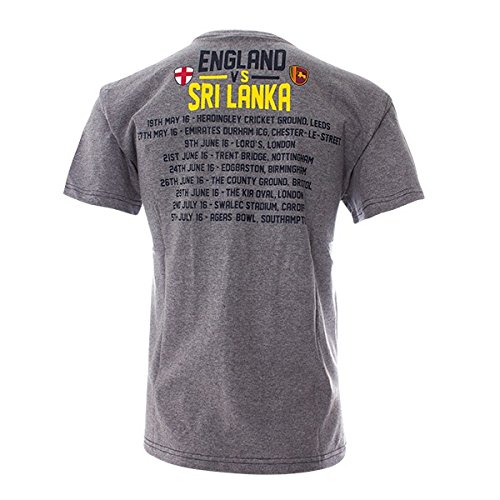 Studio : England Cricket Publisher : England Cricket Product Description Quality series supporters T-shirt. 100% cotton with subtle navy contrasting stitched trim, small embroidered England Cricket logo and large series print logo on the front. All the dates and venues of the tour printed on the rear. 0