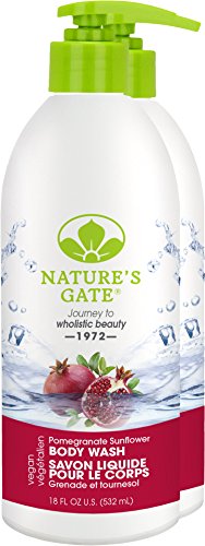 PRODUCT: Nature's Gate Natural Pomegranate and Sunflower Velvet Daily Body Wash awakens the senses with a blend of Pomegrante and Sunflower Petals, 18 ounces (Pack of 2)