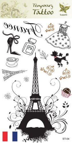 Supperb Temporary Tattoos - I Love Paris, France Eiffel Tower