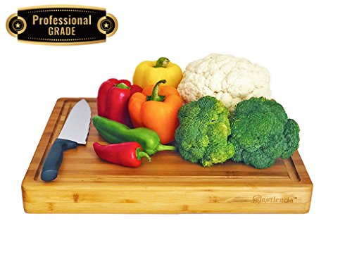Extra Large Thick Professional Grade Bamboo Cutting Board- Wooden Butcher Block, Antibacterial and Super Solid for Chopping Veggies, Fruit, Poultry and Meat- Deep Grooves- 2018 Design - 18 x 14 x 2 in