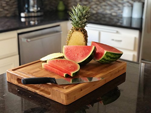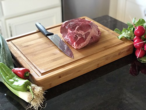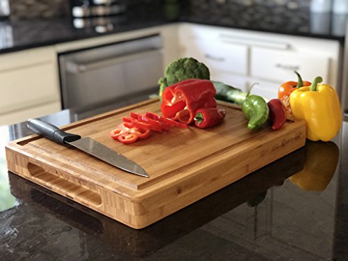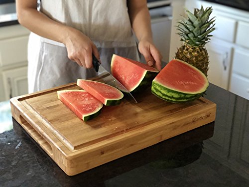 - ★USEFULNESS: When you are chopping veggies or juicy things, the juice doesn’t slide off the board but the groove catches all of it saving those messes.The handles are designed for better grip whether men or women's hands. There are so few cutting boards that are XXL 18 x 14 x 2 inches on the market and especially of this quality for carving through those meats, fish, and poultry