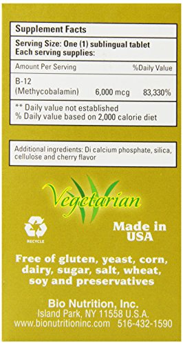 -. Binding : Health and Beauty -. Brand : Bio Nutrition -. EAN : 0854936003464 -. Feature : Prevent heart disease problems / Elevates mood / Energy -. IsAdultProduct : 0 -. Label : Bio Nutrition -. LegalDisclaimer : PLEASE NOTE: Product image is representative of the product offered but may not have the exact attributes. Please read product description for the specific attributes of this product. The information above is intended for reference only. While we attempt to keep our information accurate, we cannot guarantee it is an accurate representation of the latest formulation of the product. If you have any concerns, please visit the vendor's web site. The information above are the views of the product's manufacturer, not the views of Nutrition Supply Company. -. Manufacturer : Bio Nutrition -. Model : 346 -. MPN : 1500925 -. NumberOfItems : 1 -. PackageQuantity : 1 -. PartNumber : 1500925 -. ProductGroup : Health and Beauty -. ProductTypeName : HEALTH_PERSONAL_CARE -. PublicationDate : 2013-11-02 -. Publisher : Bio Nutrition -. ReleaseDate : 2015-06-22 -. Size : 50 -. Studio : Bio Nutrition -. Title : Bio Nutrition B-12 Sublingual Tablet, 50 Count -. UPC : 854936003464