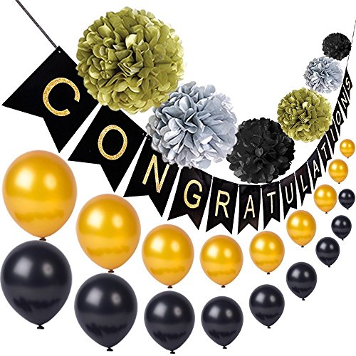 - PACKAGE INCLUDES: 6 x Tissue pom poms flowers ball; 20 x 12 inches Latex balloons; 1 x banner of CONGRATULATION flags