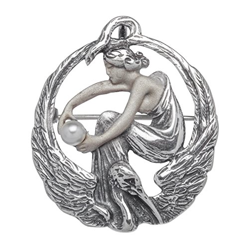 -. Title : Van Kempen Art Nouveau Lady Simulated Pearl Brooch in Sterling Silver Pin