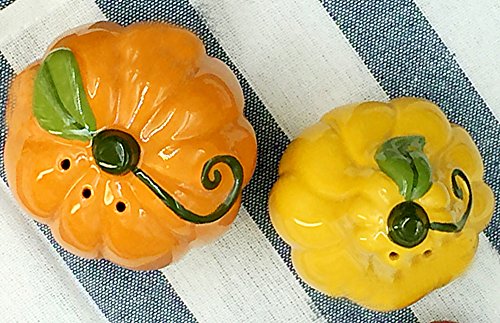 (MathewArt)/Kitchen Dining/Cook's Tools Gadgets/DIRECT FROM USA/3D Vegetable Shape Hand-painted Ceramic Salt and Pepper Shakers Cruet Set - Red Tomato / Pumpkin