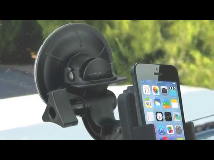 Powerful suction cup mounts to vehicle windshield. Easily move from vehicle to vehicle or stow for security