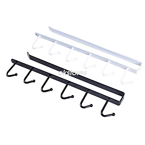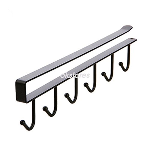 AMAZZANG-6 Hooks Cup Holder Hang Kitchen Cabinet Under Shelf Storage Rack Organiser Hook (BLACK)