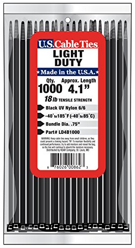 US Cable Ties LD4B1000 4-Inch Light Duty Cable Ties, UV Black, 1000-Pack