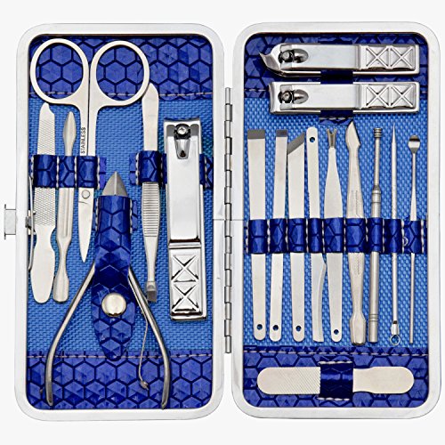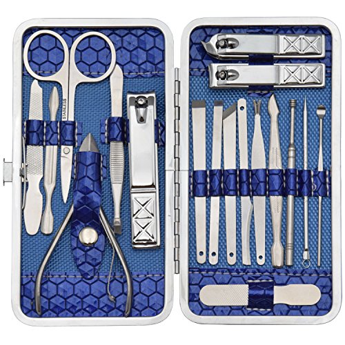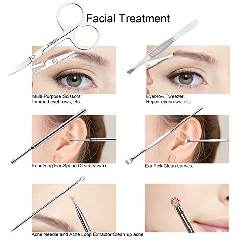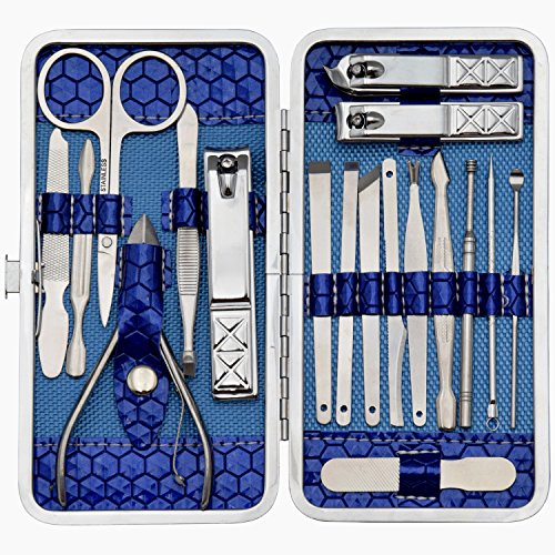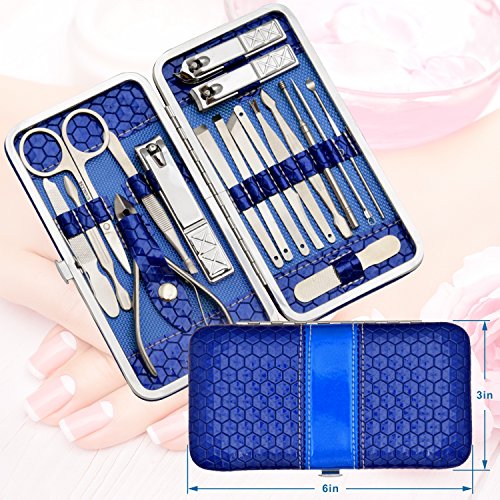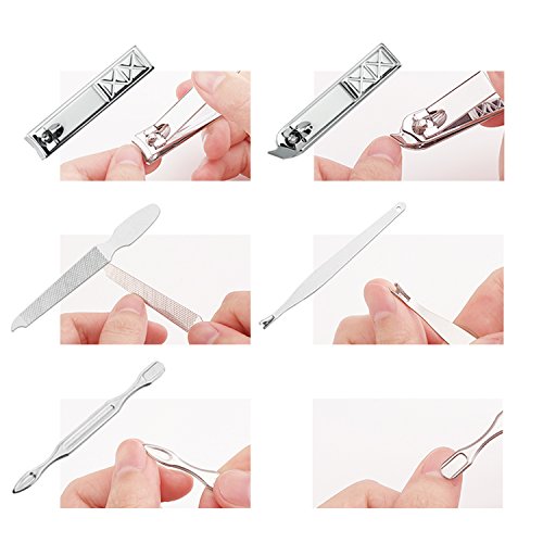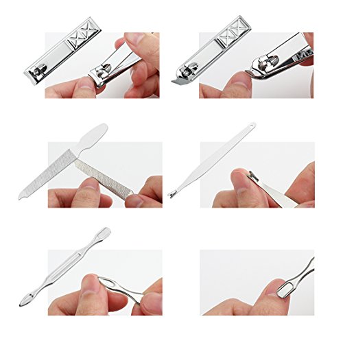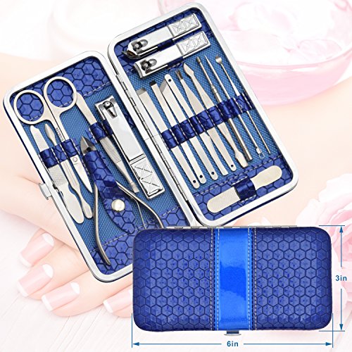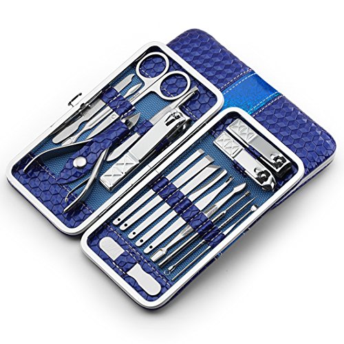 -Each tool using stainless steel grinding,after special processing technology,fine quality. - Packaged in a stylish, beautifully decorated portable PU leather box, the button gently press it, it opened. - 18 pieces of set, Full-featured, facial care, hand care, foot care, to help you show beautiful looks;. - Package size is small, but lightweight portable, powerful, to meet the daily life, travel to carry. -This is a professional beauty manicure pedicure tool kit for professional care, but also for personal care.- It is also a good gift (Halloween, Christmas, Valentine's Day, Mother's Day, Father's Day), give your family and friends.