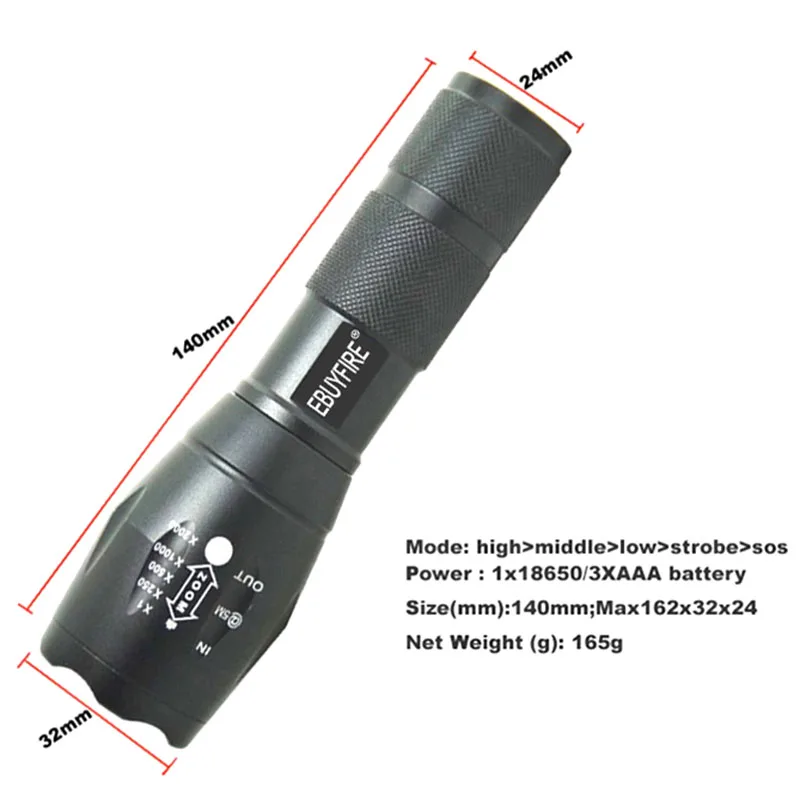 1 X XM-L T6 5 Mode Focus Flashlight Torchu0026nbsp;(NOT include Battery charger)