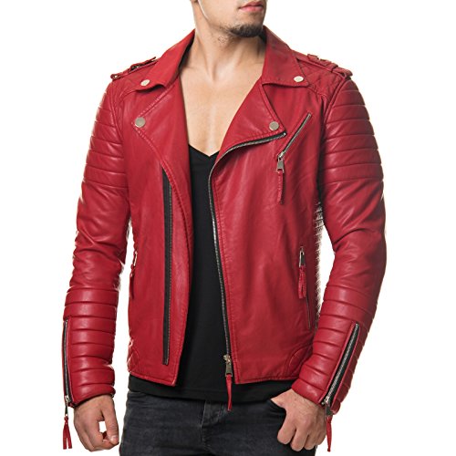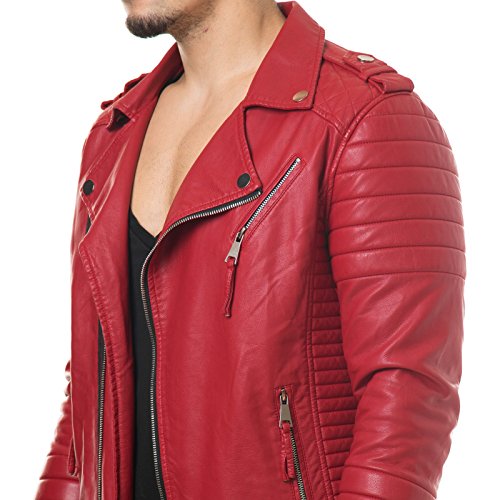 -. Binding : Textilien -. Brand : Prestige Homme -. Feature : Etwas Biker-Attitude mit einem Haufen Coolness. Genau so muss dieses Modell von Prestige Homme kreiert wurden sein. Eine Lederjacke, wie sie jeder Mann braucht! Eine absolut trendige Kombination aus Funktionalität und edler Optik, die man sich nicht entgehen lassen sollte. / Hinweis: Jacke fällt klein aus - gegebenenfalls eine Nr. größer bestellen - siehe dazu Größentabelle / Unser Model ist 172 cm groß bei einem Körpergewicht von 70 kg und trägt die Größe S / Größentabelle / Schulterweite Brustweite Oberarmlänge Gesamtlänge -. ProductGroup : Apparel -. ProductTypeName : OUTERWEAR -. Title : Prestige Homme MR18-4 Herren Kunst Lederjacke Biker Jacke Gesteppt Schwarz Rot S-XXL