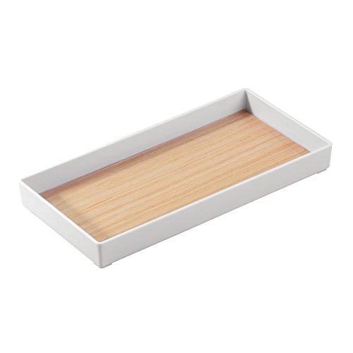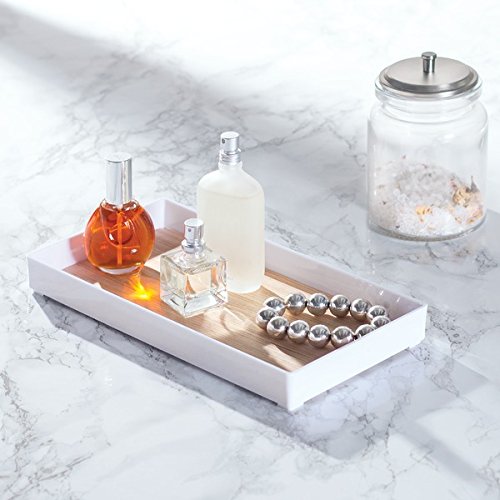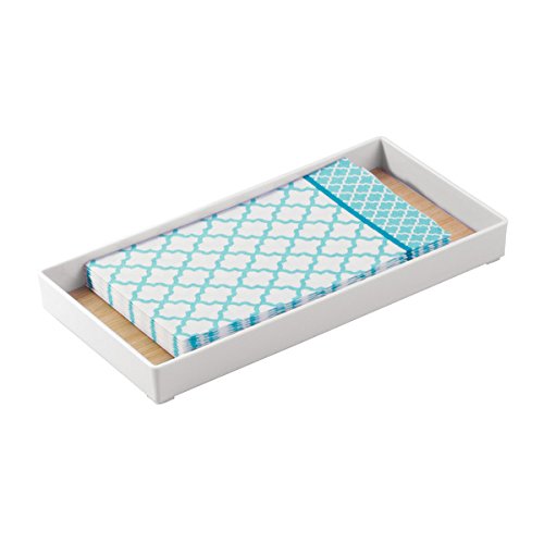 mDesign Guest Towel Holder Tray for Bathroom - White/Light Wood Finish